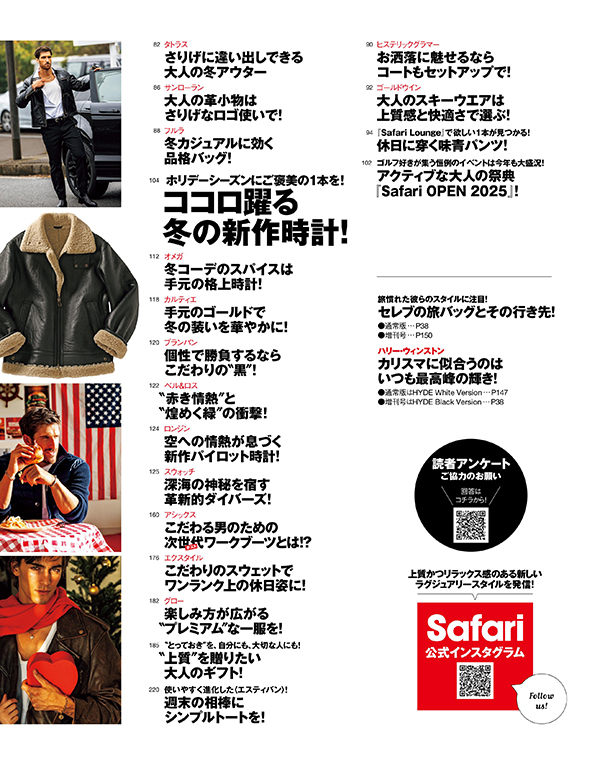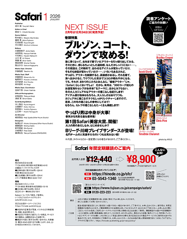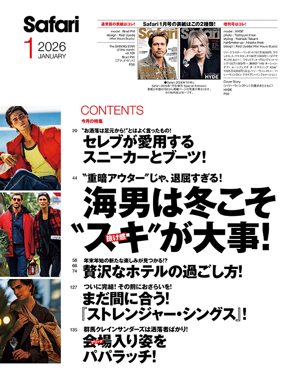 Safari 2026年1月号とSafari 2026年1月号増刊 Special Editionは表紙と中面HYDEさん掲載ページの写真が異なります。その他内容は同一です。