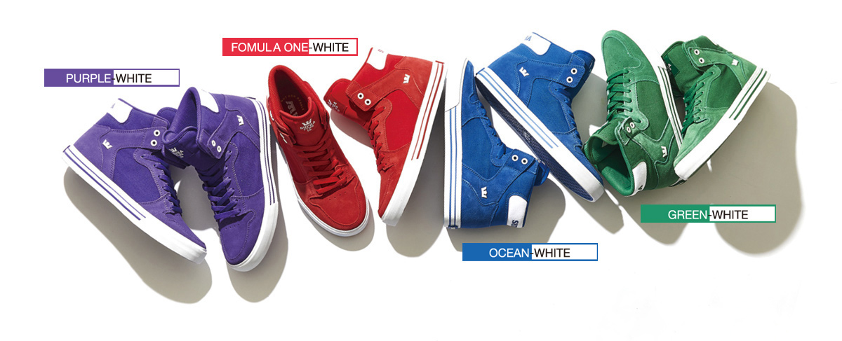 圧倒的な個性を放つスーパーハイカットのスカイトップとは対照的に、ベーシックなフォルムで人気の“ベイダー”。それゆえ、ブラックやホワイトといったシンプルなカラーがアイコンとして愛され続けている。じつはその一方で、時代を汲み取ったスープラらしいカラードも発売されていた。限定的なシーズナルカラーのためコアなファンを中心にバズり、即完が続いたことで知る人も意外と多くはない。そんな人気を誇った過去を持つカラード全9色を、初復刻するというから注目せざるを得ない。足元を強調するストリートスタイルが街で流行っている中で、間違いないスニーカーとなるだろう。カラードの“ベイダー”を知らなかった人も、買い逃してしまった人も、狙わずにはいられないはずだ。