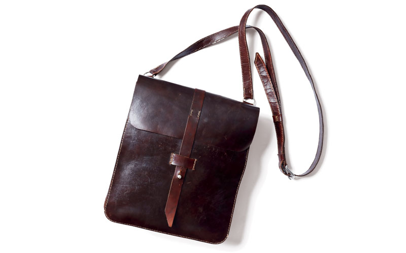 オーストラリアの職人に特別オーダーしたレザーのショルダーバッグ。 「素材は軽くて強度のあるカンガルーレザー。小ぶりなサイズと、中の仕様にこだわったんだ」
